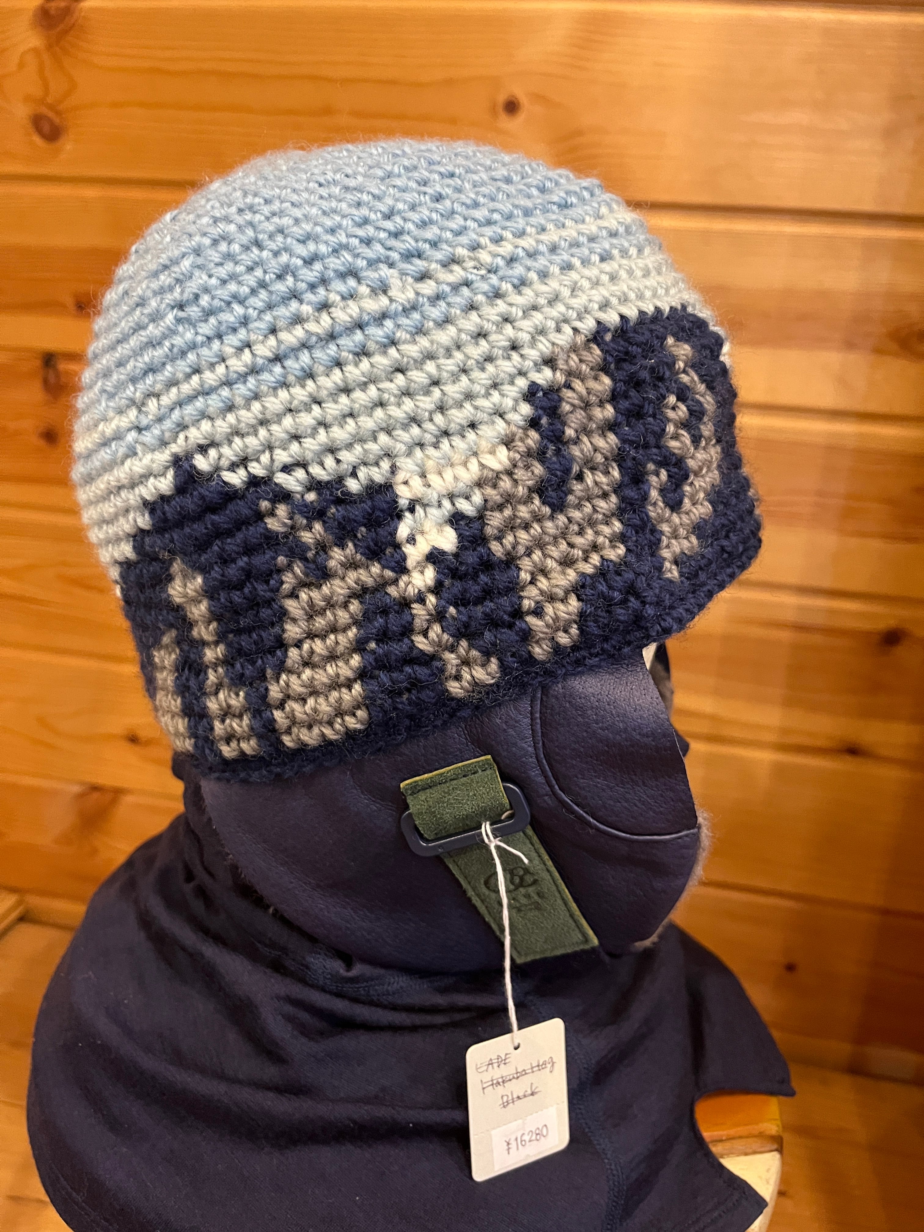 当店限定HAKUBA三山がデザインされた本革耳当て付きビーニー。