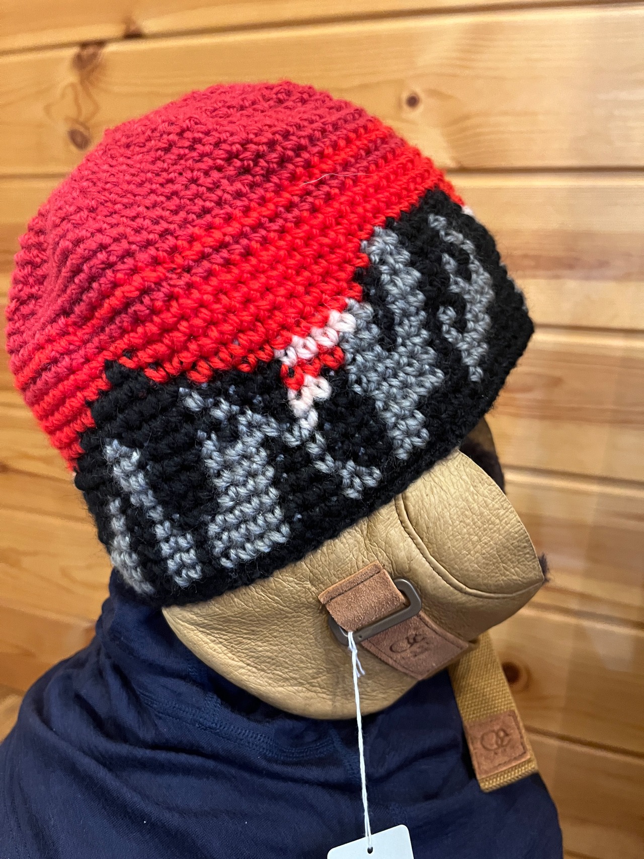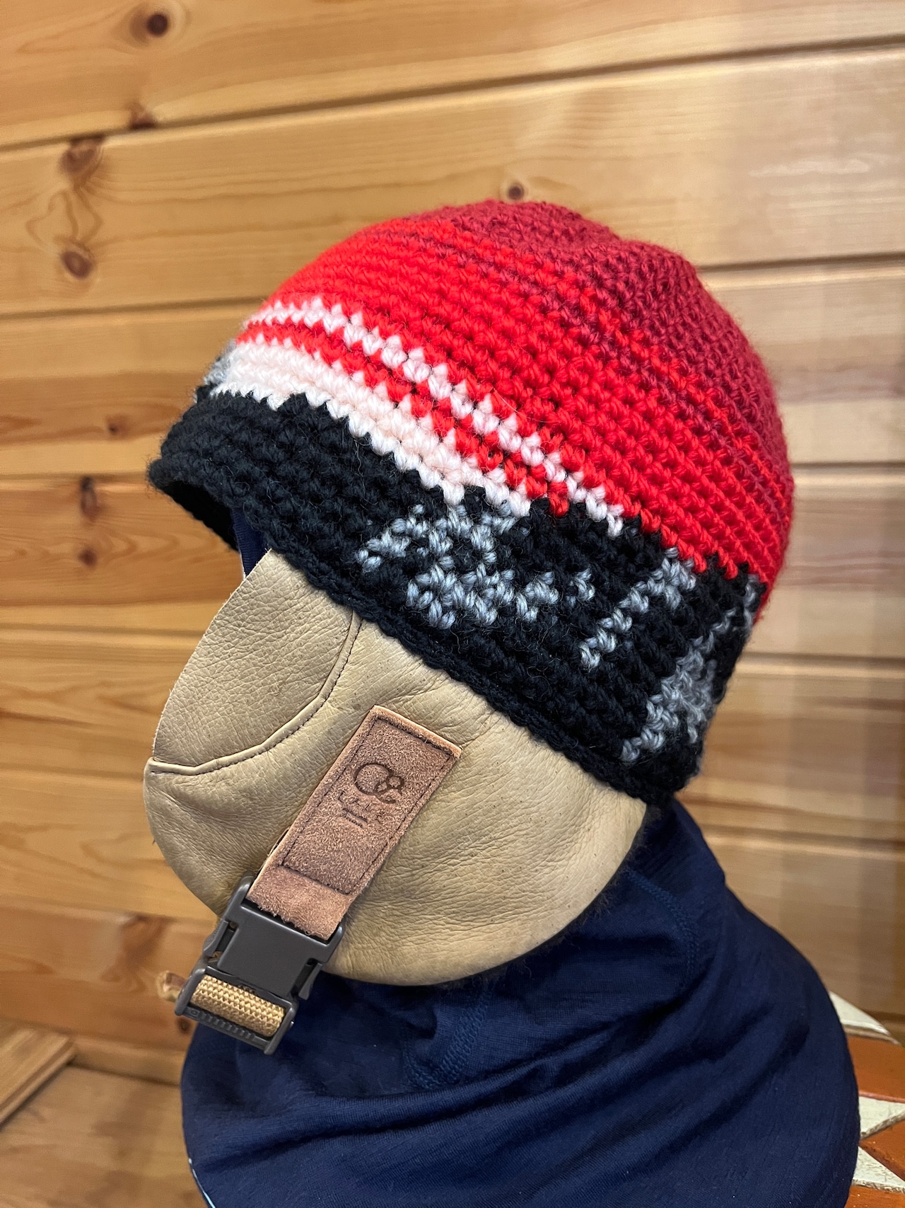 当店限定HAKUBA三山がデザインされた本革耳当て付きビーニー。